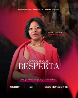 Prepare-se para viver uma experiência transformadora! Este evento foi criado para mulheres que desejam se reconectar com o corpo, com os sentidos e com o prazer de ser quem são. Falaremos sobre o toque consciente, o poder do autoconhecimento e o resgate da autoestima íntima — temas essenciais para quem busca leveza, amor-próprio e uma vida mais prazerosa em todos os sentidos. Será um encontro de troca, aprendizado e acolhimento, com dinâmicas, conteúdos exclusivos, sorteios e muita energia boa. Venha viver esse despertar e redescobrir o prazer que habita em você!